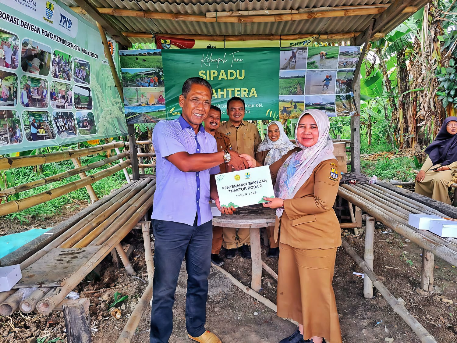 Penyerahan dilakukan secara simbolis kepada perwakilan Gapoktan Harjamukti Makmur, yaitu Sekretaris Gapoktan, Edi Supriyadi, bertempat di Pos Kelompok Tani Sipadu Sejahtera, Blok Sipadu RW 19 Larangan Timur, Kelurahan Larangan, Kecamatan Harjamukti, Kota Cirebon. Kegiatan berlangsung dengan latar hamparan sawah petani yang saat ini tengah memasuki musim tanam, sehingga menambah suasana khidmat penyerahan bantuan tersebut.