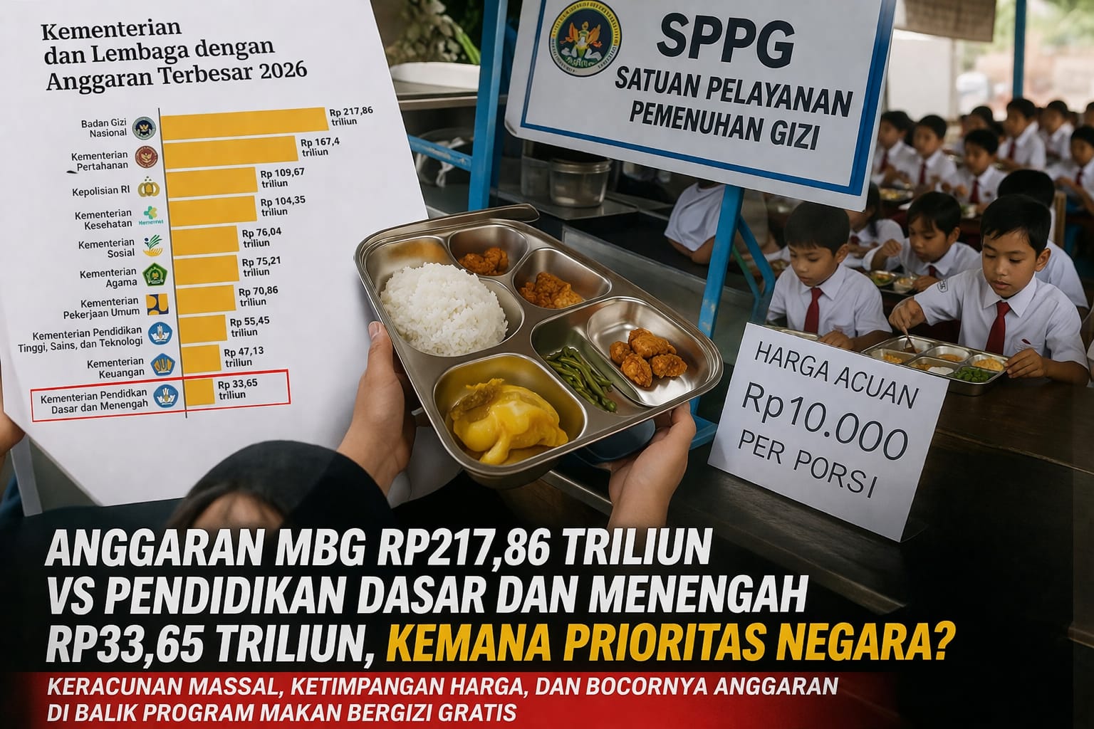 Tahun anggaran 2026 menandai babak baru dalam arah kebijakan fiskal nasional, di mana Badan Gizi Nasional muncul sebagai institusi dengan alokasi anggaran terbesar, mencapai Rp 217,86 triliun. Angka ini melampaui berbagai kementerian strategis lainnya, termasuk Kementerian Pendidikan Dasar dan Menengah yang hanya memperoleh Rp 33,65 triliun. Disparitas yang sangat tajam ini memunculkan pertanyaan mendasar mengenai rasionalitas distribusi anggaran, terutama ketika kedua sektor tersebut memiliki tujuan yang saling berkaitan, yakni meningkatkan kualitas pendidikan nasional.