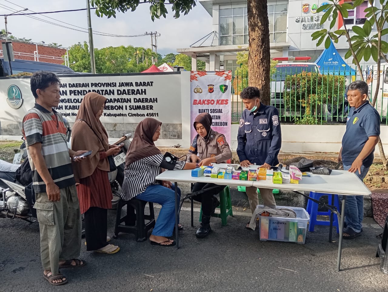 KAPOLRESTA CIREBON, KOMBES POL SUMARNI, S.I.K., S.H., M.H, mengatakan, dalam kegiatan tersebut jajaran Sie Dokkes Polresta Cirebon melaksanakan Bakti Sosial Kesehatan dan Pengobatan Gratis di kawasan CFD Sumber.