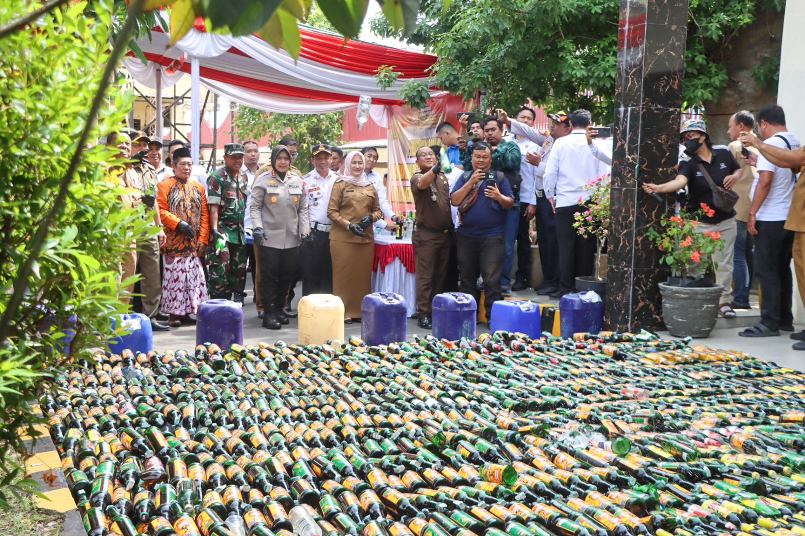 Ia mengatakan, jumlah miras yang dimusnahkan dalam kegiatan kali ini terdiri dari berbagai merek minuman keras pabrikan sebanyak 1.980 Botol, minuman keras tradisional jenis ciu sebanyak 7.347 botol, minuman keras tradisional jenis tuak sebanyak 426 liter, dan knalpot tidak sesuai spesifikasi teknis 2.560 buah.