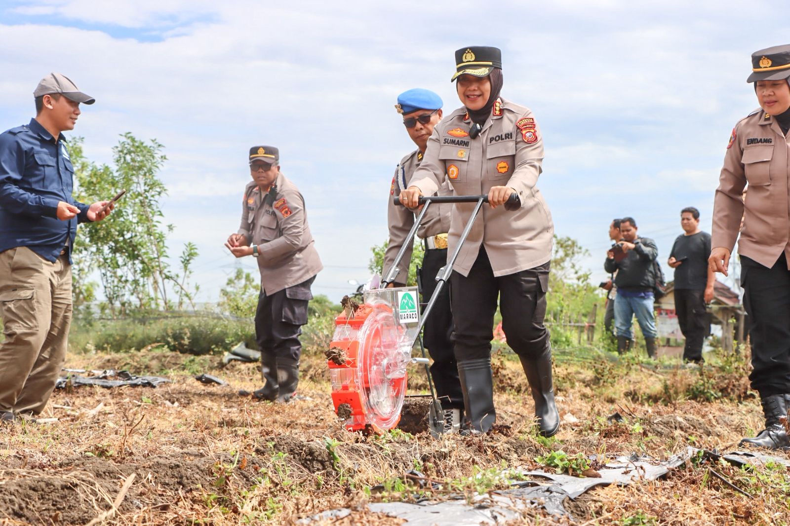 “Hari ini kita menanam jagung pipil untuk mendukung ketahanan pangan di sektor jagung. Kegiatan ini sekaligus menjadi sarana pemberdayaan masyarakat dan edukasi tentang pentingnya bercocok tanam di lingkungan sekitar. Mari kita teruskan semangat ini agar bangsa kita dapat mencapai kemandirian pangan, khususnya di sektor jagung,” ujar Kombes Pol Sumarni.