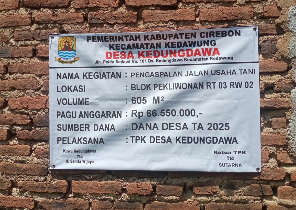 Pekerjaan pengaspalan jalan usaha tani di Desa Kedungdawa, Kecamatan Kedawung, Kabupaten Cirebon, masih menuai sorotan tajam. Proyek dengan panjang 605 meter dan menelan anggaran sebesar Rp66.550.000 yang bersumber dari Dana Desa (DD) Tahun Anggaran 2025 itu diduga tidak transparan dan tidak melibatkan masyarakat setempat.