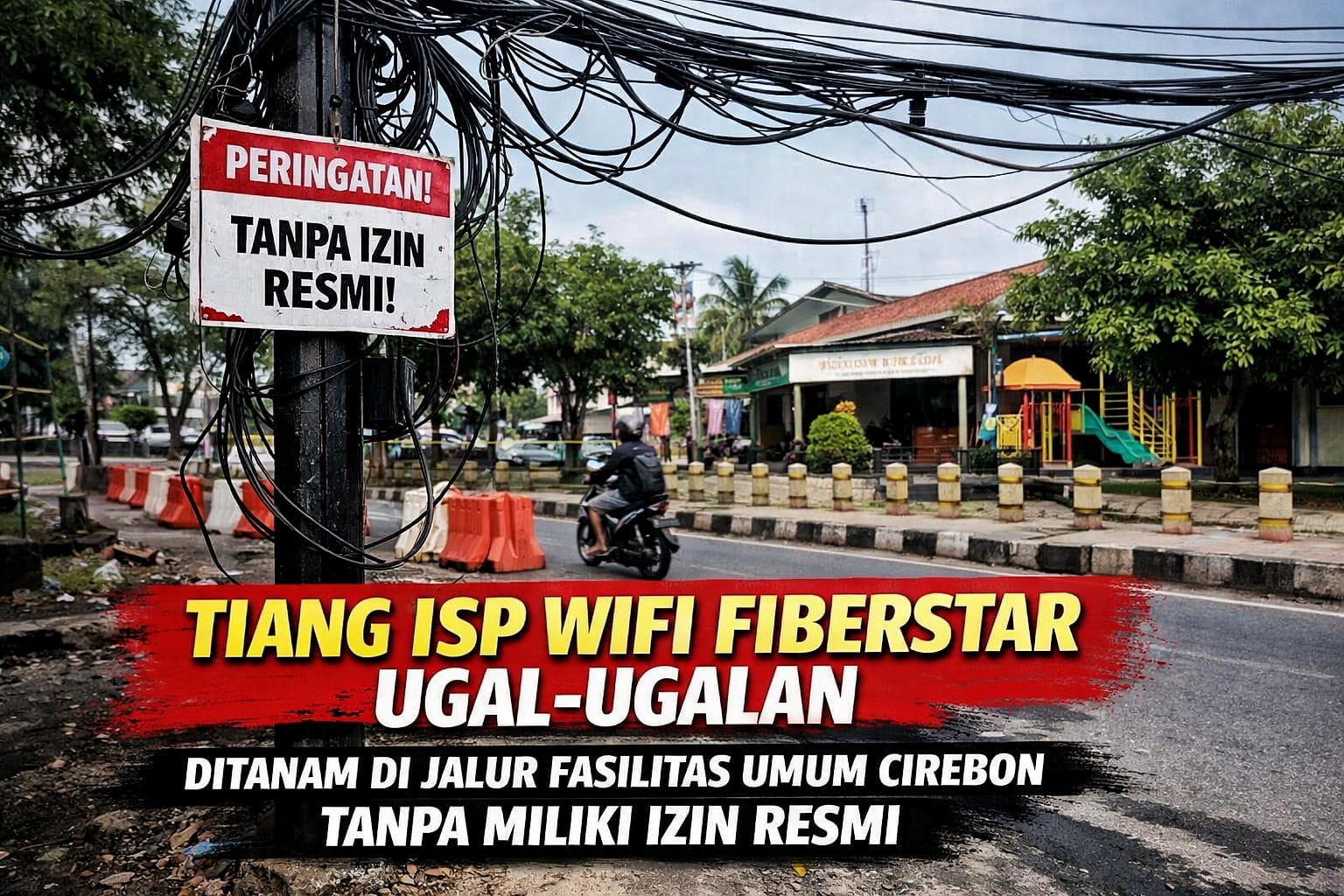 TIANG ISP FIBERSTAR TANPA IZIN RESMI DIDUGA LANGGAR ATURAN SECARA UGAL – UGALAN MENJAMUR dI FASILITAS UMUM CIREBON